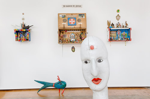 Das museumbickel zeigt in seiner ersten Ausstellung im 2014 Holzskulpturen, Bilder, Texte und Installationen des in Winterthur lebenden Künstlers Erwin Schatzmann. Mit seinem Projekt «Ein See für Winterthur» gelangte Schatzmann Ende der Neunzigerjahre zu nationaler Bekanntheit, ist aber schon seit 1979 als freischaffender Künstler tätig und zählt heute zu den herausragenden Winterthurer Kunstschaffenden. Seine farbig bemalten Skulpturen und Objekte, wie auch sein übriges, äusserst facettenreiches Œuvre zeugen von einer intensiven und engagierten Auseinandersetzung mit philosophischen, religiösen und politischen Themen und einem zum Gesamtkunstwerk neigenden, alle Lebensbereiche umfassenden Gestaltungswillen im Dienste einer neuen, menschlichen, Sinn und Freude stiftenden Kultur.