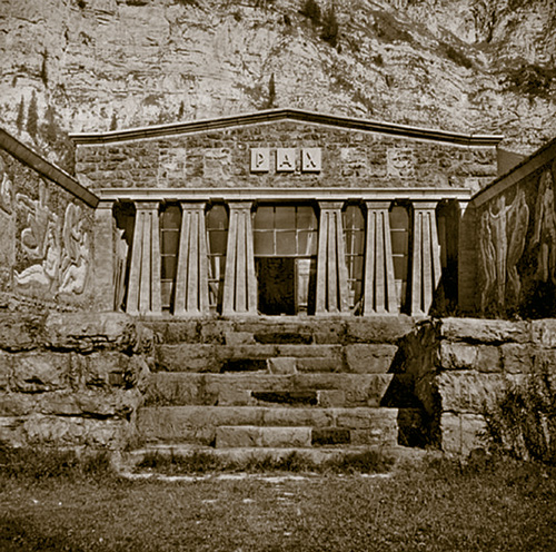 25 Jahre lang, von 1924 bis 1949, arbeitete Karl Bickel an der Verwirklichung dieses Friedensdenkmals auf Walenstadtberg. Er selbst, seine Frau und sein Sohn nahmen grosse Strapazen auf sich und wohnten sogar viele Jahre lang im Giebelraum des entstehenden Bauwerks, 1300 m.ü.M. und weit abgelegen von der Ortschaft Walenstadt. Der in jungen Jahren kurz vor dem Ersten Weltkriegs an Tuberkulose erkrankte Karl Bickel hatte gelobt, dem Frieden ein Denkmal zu bauen, wenn er von der Krankheit genesen sollte.