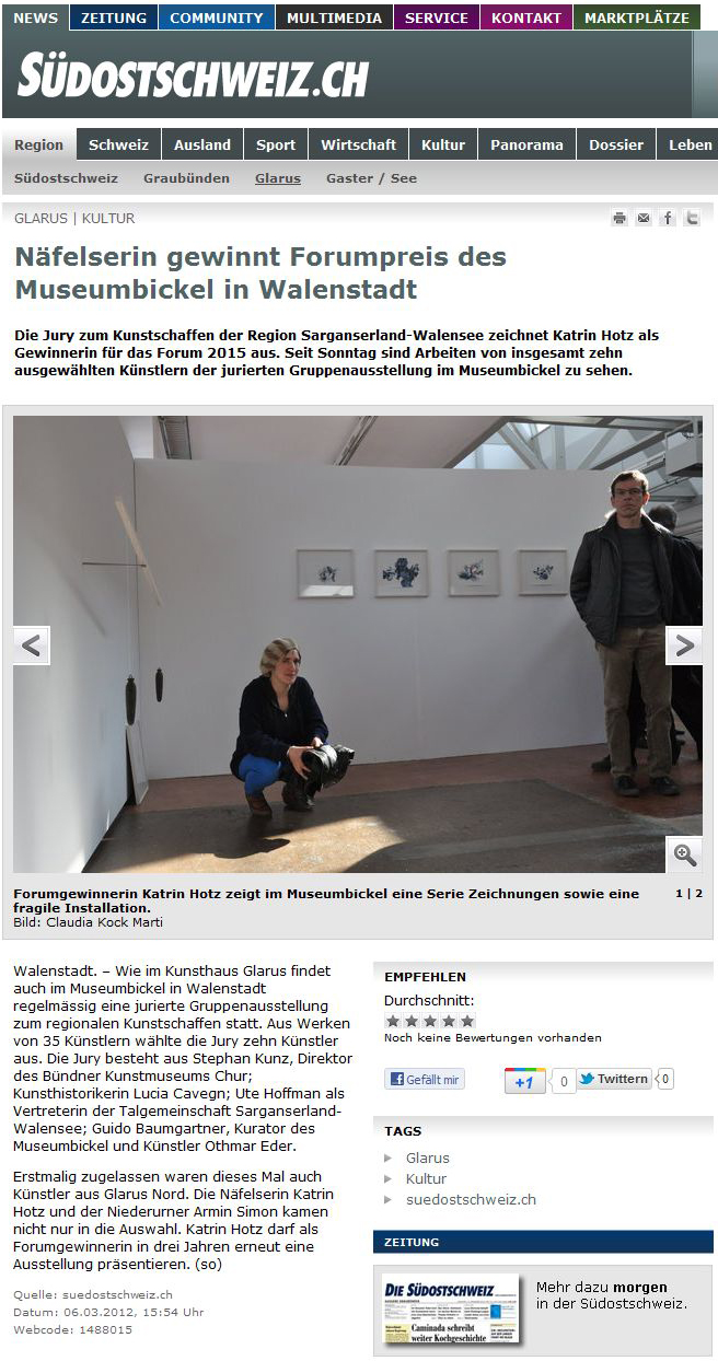 In Zusammenarbeit mit der Kulturkommission der Talgemeinschaft Sarganserland-Walensee und dem museumbickel findet die vierte jurierte Gruppenausstellung zum regionalen Kunstschaffen statt.