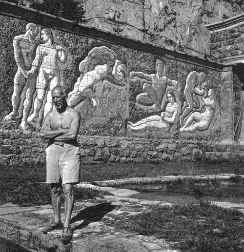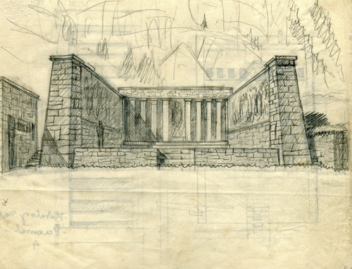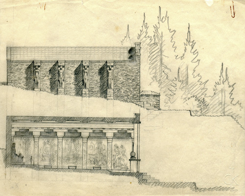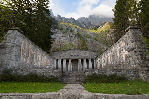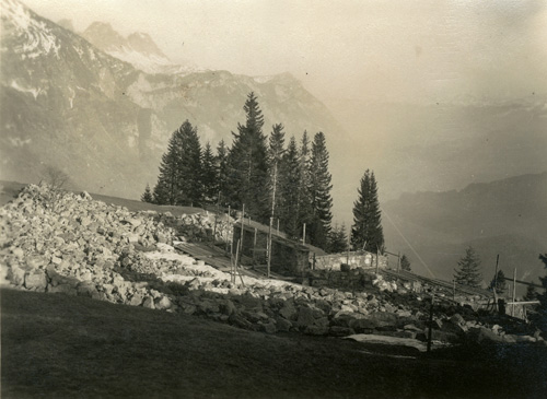 25 Jahre lang, von 1924 bis 1949, arbeitete Karl Bickel an der Verwirklichung dieses Friedensdenkmals auf Walenstadtberg. Er selbst, seine Frau und sein Sohn nahmen grosse Strapazen auf sich und wohnten sogar viele Jahre lang im Giebelraum des entstehenden Bauwerks, 1300 m.ü.M. und weit abgelegen von der Ortschaft Walenstadt. Der in jungen Jahren kurz vor dem Ersten Weltkriegs an Tuberkulose erkrankte Karl Bickel hatte gelobt, dem Frieden ein Denkmal zu bauen, wenn er von der Krankheit genesen sollte.