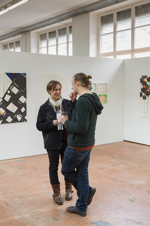 Guido Baumgartner, Kurator, im Gespräch mit den KünstlerInnen