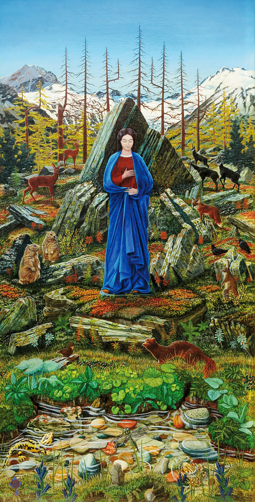 Die Ausstellung ermöglicht, das künstlerische Schaffen der beiden Karl Bickel nebeneinander zu sehen. Karl Bickel Junior, aufgewachsen in der Bergwelt der Schrina hoch über dem Walensee, hat nicht nur am Bau des Paxmals mitgewirkt, sondern von seinem Vater auch das Handwerk des Markenstechens erlernt und 70 Briefmarken für die Schweiz geschaffen. Hauptsächlich aber war er Maler. Im Gegensatz zu Karl Bickel Senior blieb er ganz der gegenständlichen Malerei treu und verwandelte die vertrauten Landschaften in Kulissen für märchenhafte oder symbolische Szenen. Seine Bilder sind von einem idyllischen Grundton und einem zauberhaften Detailreichtum geprägt. Die Ausstellung zeigt Malerei beider Bickel mit Landschaften und Porträts sowie Ausschnitte aus dem Briefmarkenwerk.