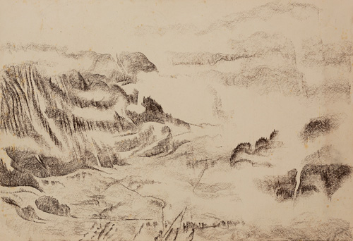 der Churfirsten, hat Karl Bickel in unzähligen Kohle- und Rötelzeichnungen dargestellt, ja geradezu porträtiert. Nur wenige Landschaften hat er als Ölgemälde verwirklicht. Hingegen konnte er bereits