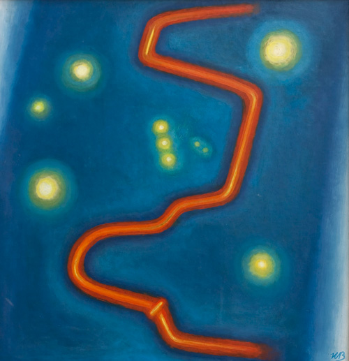 Dabei erweist sich Blau als die Farbe, die mehr als alle anderen die Präsenz des Malers fordert und ein tiefes Eintauchen in sich selbst bedeutet. Es ist die Farbe der Transformation, die aus dem Malprozess gleichzeitig eine Erforschung des Bewusstseins macht.